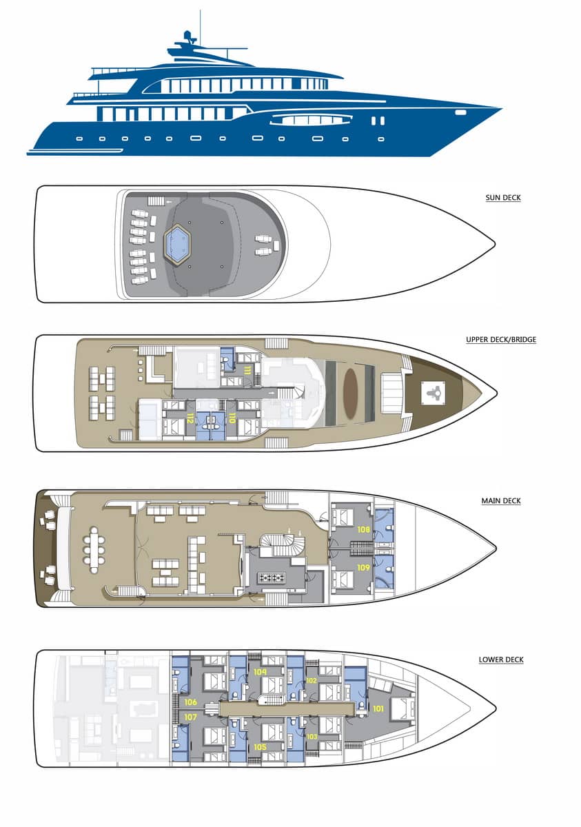 Blue Force One is rated as the best liveaboard in Maldives and rated top 10 liveaboard in the world. Details such as an outdoor jacuzzi, solariums with sun loungers, an outdoor bar, a large lounge, and modern cabins make it an ideal boat for enjoying diving vacation without sacrificing comfort. Furthermore, all diving and equipment are on Dhoni, the 75-ft support vessel!